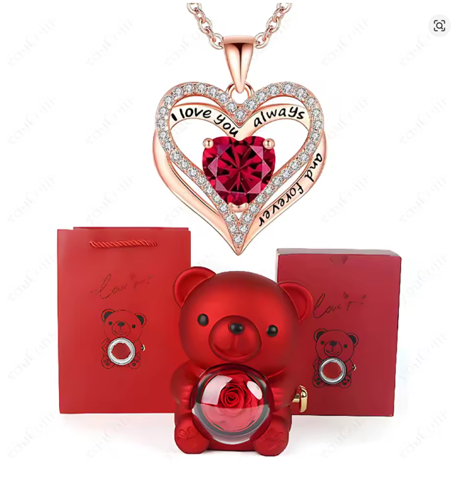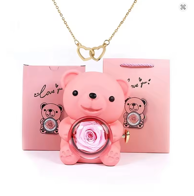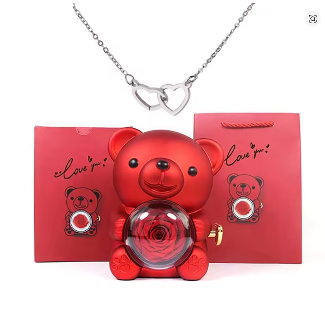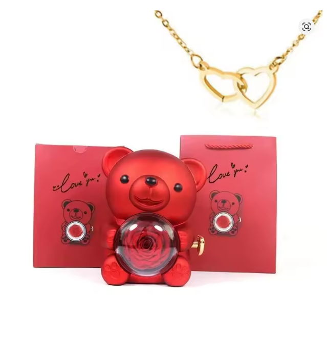 Miś z wieczną różą i naszyjnikiem – idealny prezent dla ukochanej